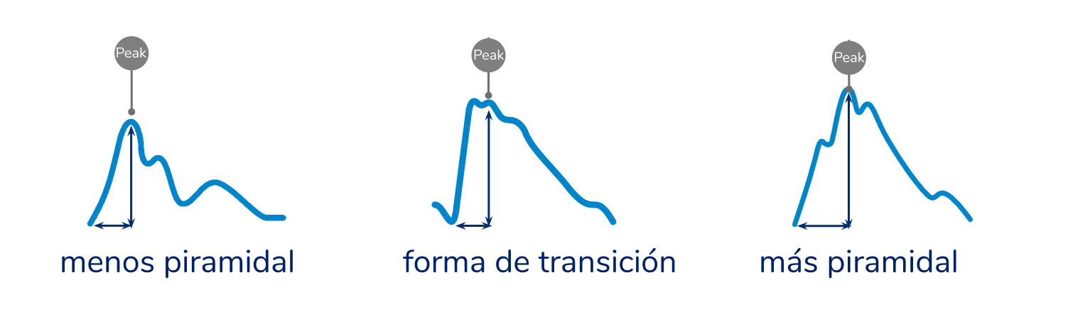 ejemplos visuales del tiempo normalizado hasta el pico: