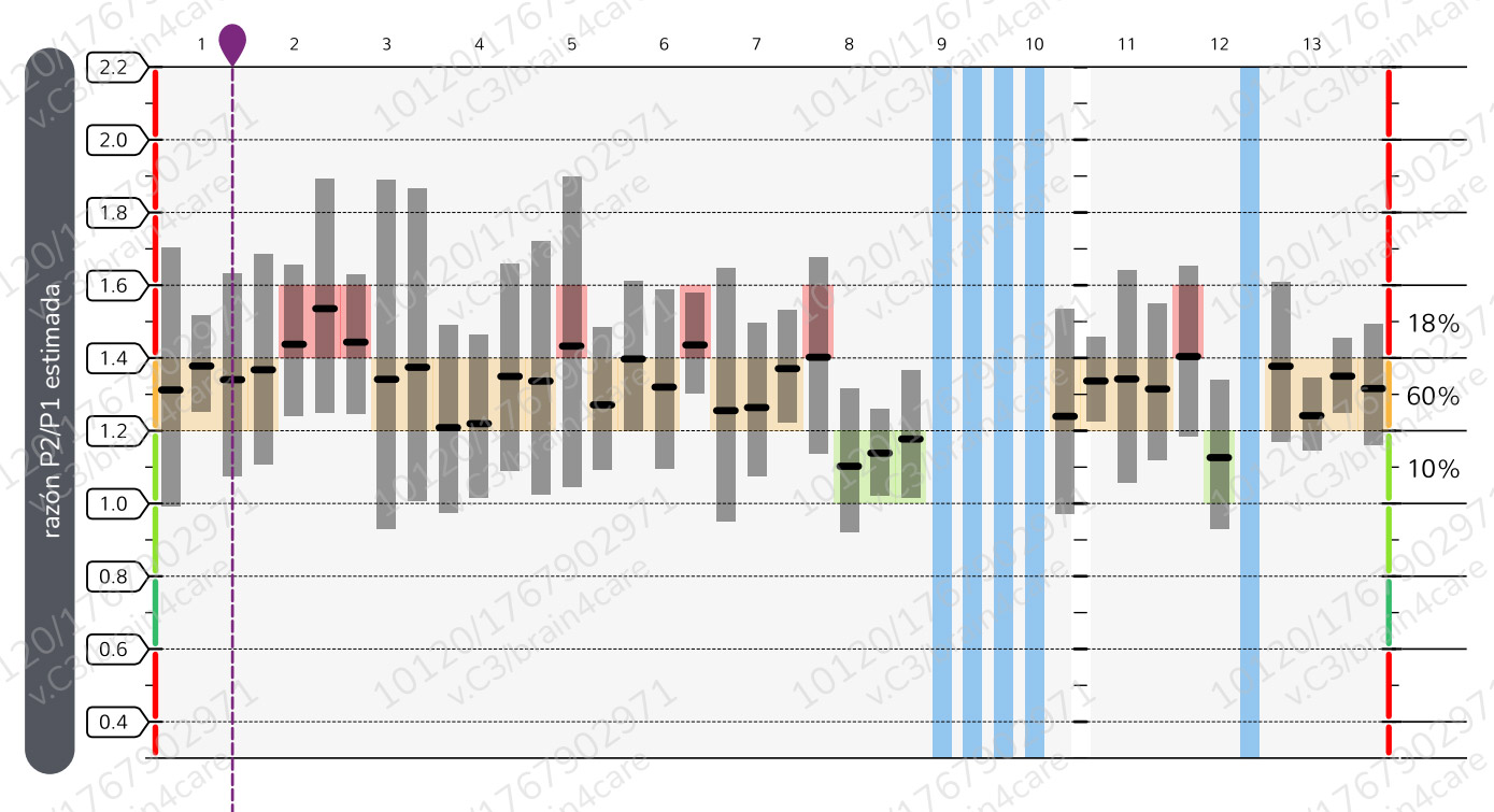 - P2/P1 > 0,8 y < 1,2: umbral basal para población sana*